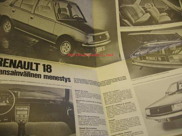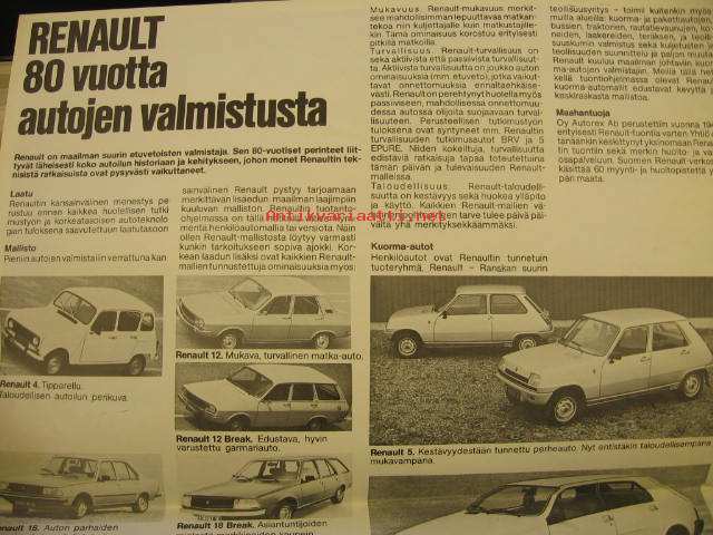 Tabloidkokoinen esitelehti, Renault 5, 18, 80 vuotta Renault autoja, Renault F1 V6 Turbo.