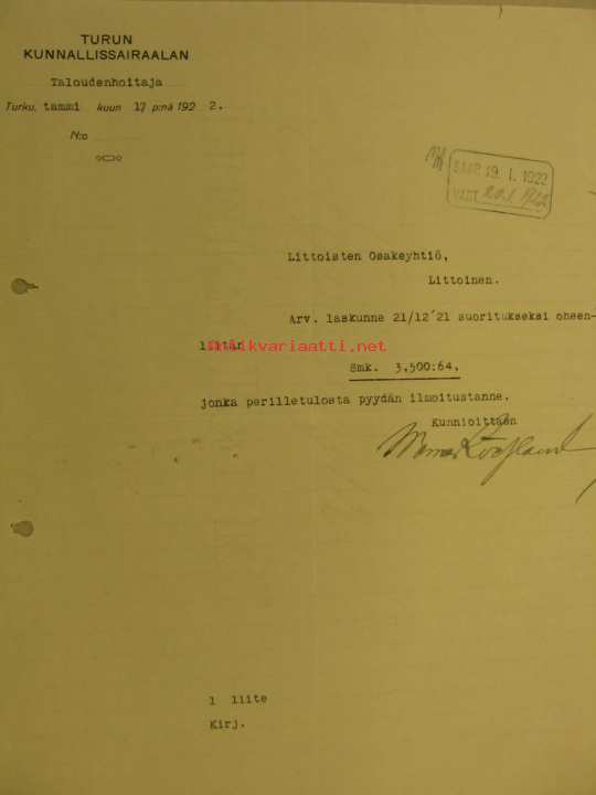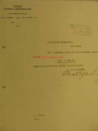 Turun Kunnallissairaalan taloudenhoitaja asiakirja 1922