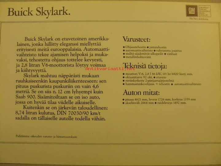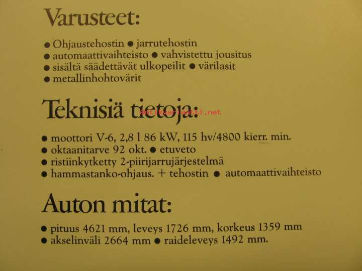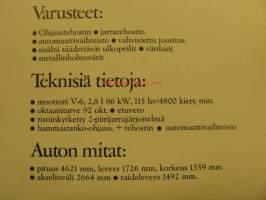 A-4 kokoinen myyntiesite, ei merkittyä paino- eikä mallivuotta.