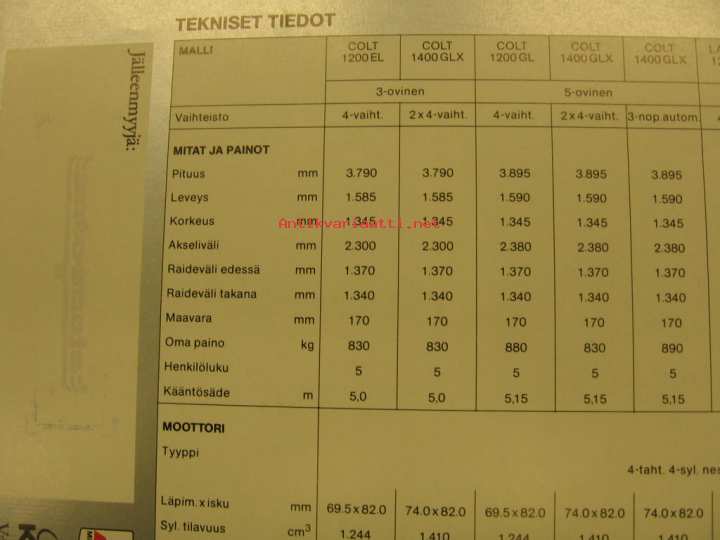 Mitsubishi Colt Lancer Galant myyntiesite