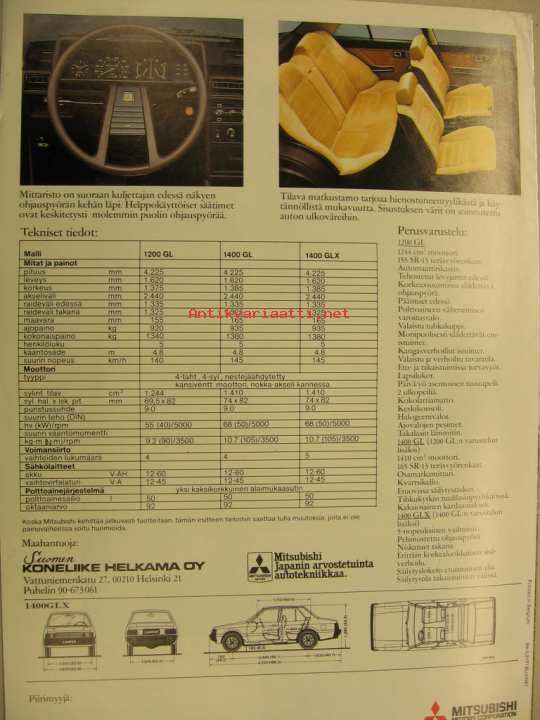 Mitsubishi Lancer 1200GL 1400GL 1400GLX vm. 1981 myyntiesite