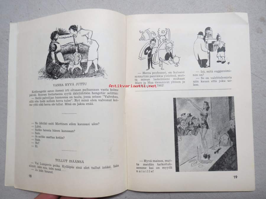 | Saatavilla | 1 kpl | | Julkaisuvuosi | 1948 | | Sivuja | 32 | | Kunto | K2 | | Sidonta/painoasu | Lehti | | Kielet | Suomi |