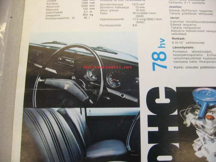 A-4 kokoinen myyntiesite, ei merkittyä paino- eikä mallivuotta.