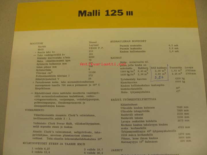Michigan 125 III kauhakuormaaja myyntiesite