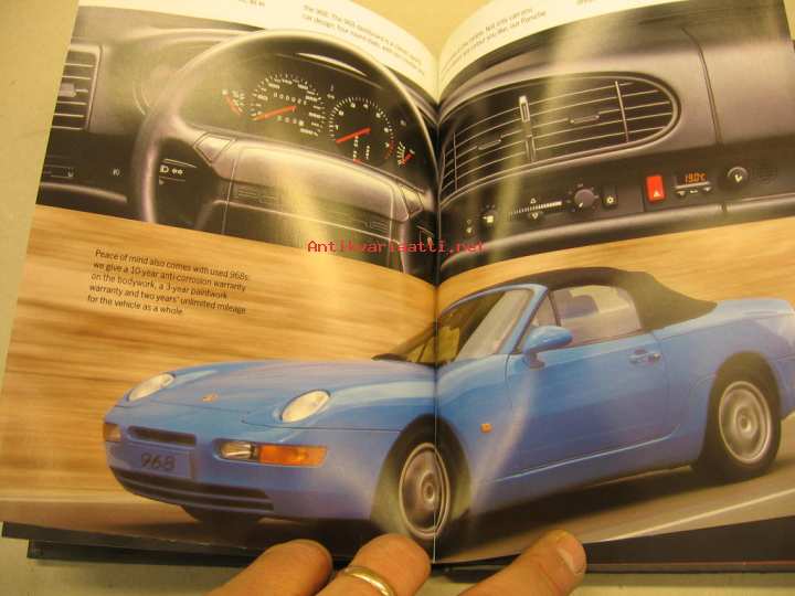 Porsche 968 vm. 1994 myyntiesite (koko 15,5 x21 cm, kovat kannet, 40-sivuinen kirja) mukana erillinen technical data -arkki, painokoodi WVK 127 020 94. Teksti englannksi. In english.