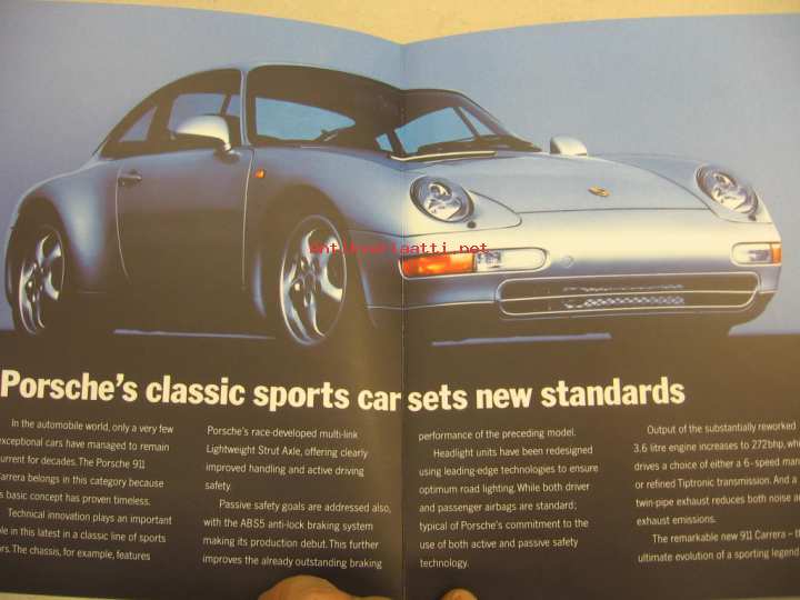 Porsche 911 Carrera esite. Noin 15 x 21 cm englannin kielinen myyntiesite.