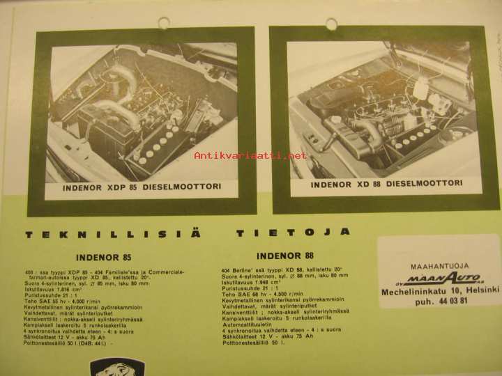 Noin 19 x 24 cm myyntiesite. Mallivuosi merkitty rekisterikilpeen.