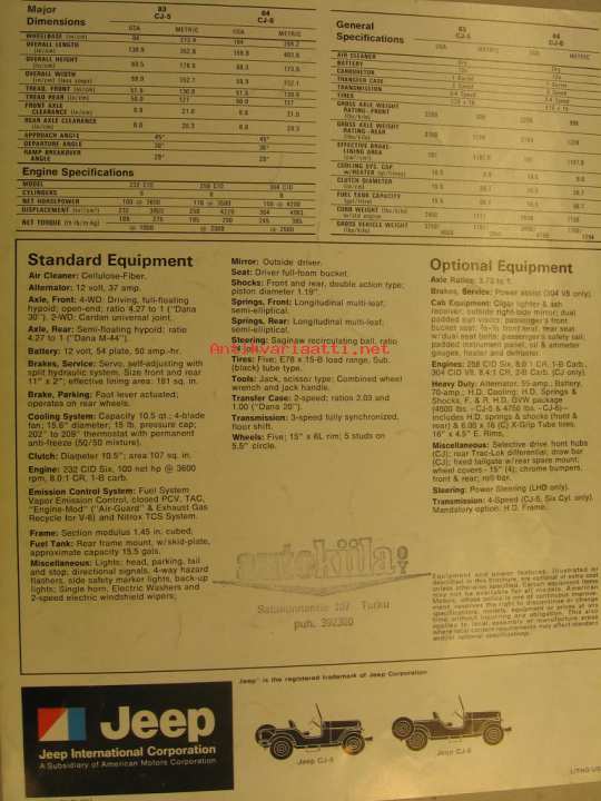 Noin 21 x 28 cm taittoesite, ei selvästi merkittyä paino- eikä mallivuotta, painokoodi JIC 7451.