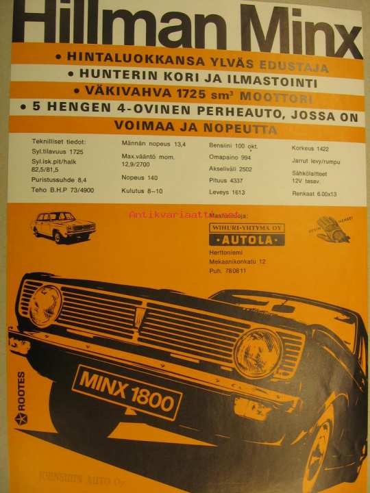 Hillman Minx myyntiesite