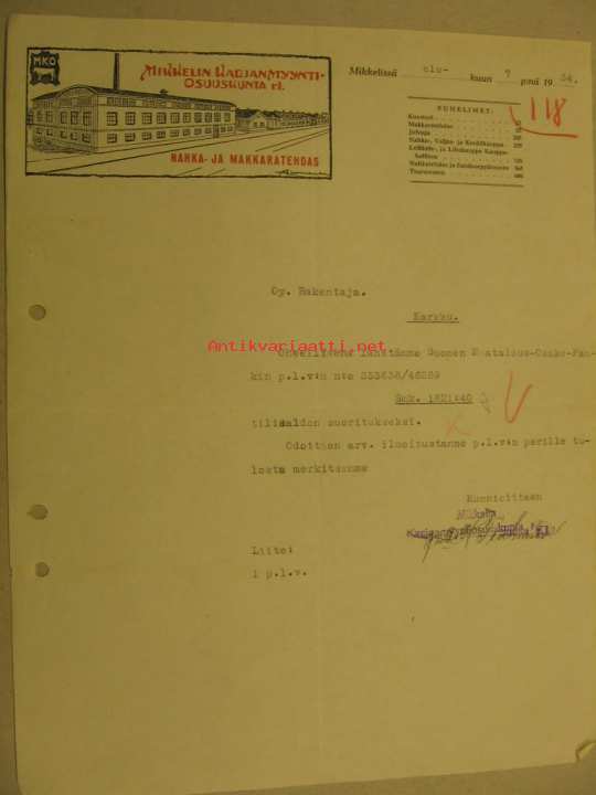 Mikkelin Karjanmyyntiosuuskunta rl Nahka- ja Makkaratehdas -asiakirja