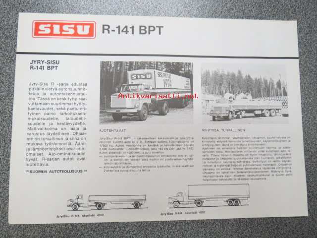 Sisu R-141 BPT Jyry-Sisu 1976 -myyntiesite Jyry Sisu kaksiakselinen takapyörävetoinen kuorma-auto