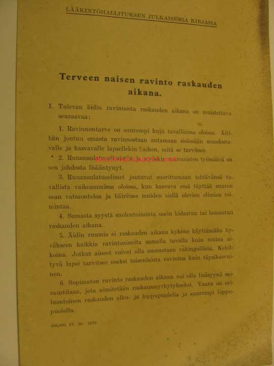 Terveen naisen ravinto raskauden aikana - Lääkintöhallituksen kirjasia 1936