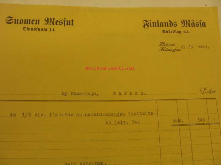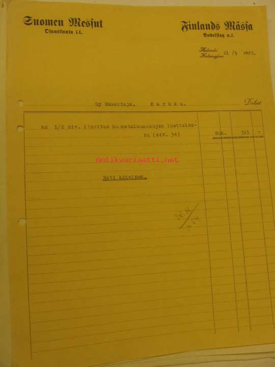 Suomen Messut -asiakirja 21.9.1927