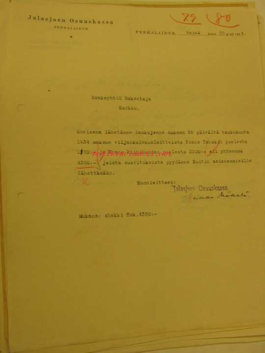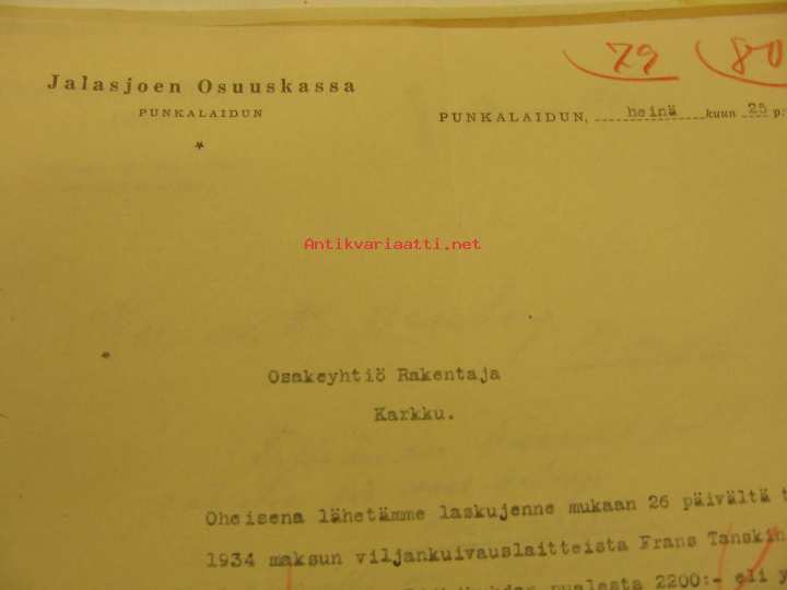 Jalasjoen Osuuskassa Punkalaidun -asiakirja 25.7.1934