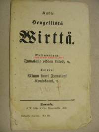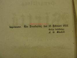 | Saatavilla | 1 kpl | | Julkaisuvuosi | 1852 | | Sivuja | 8 | | Kunto | K3 | | Kielet | Suomi |