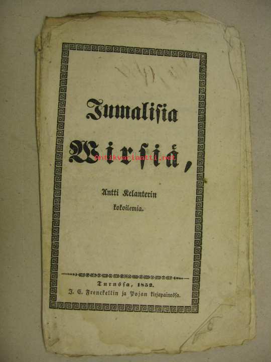 J.C. Frenckell & Poika, 1852Antti Relanderin kokoilemia virsiä. Huomaa kannen kaunis kehystys.