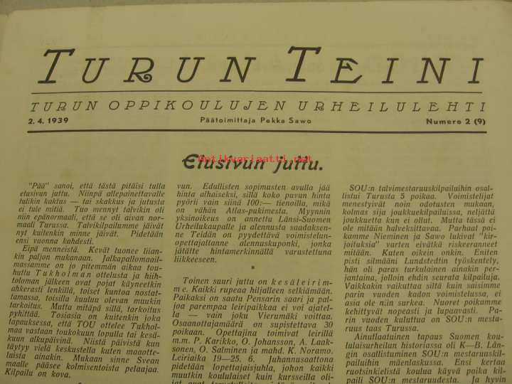 Turun Teini - Turun oppikoulujen urheilulehti 2.4.1939 nr 2