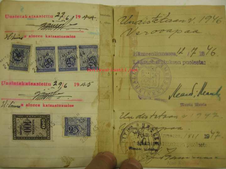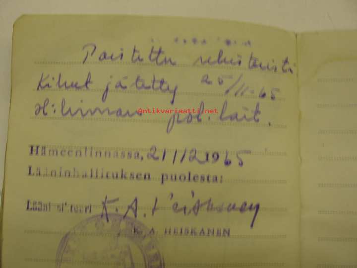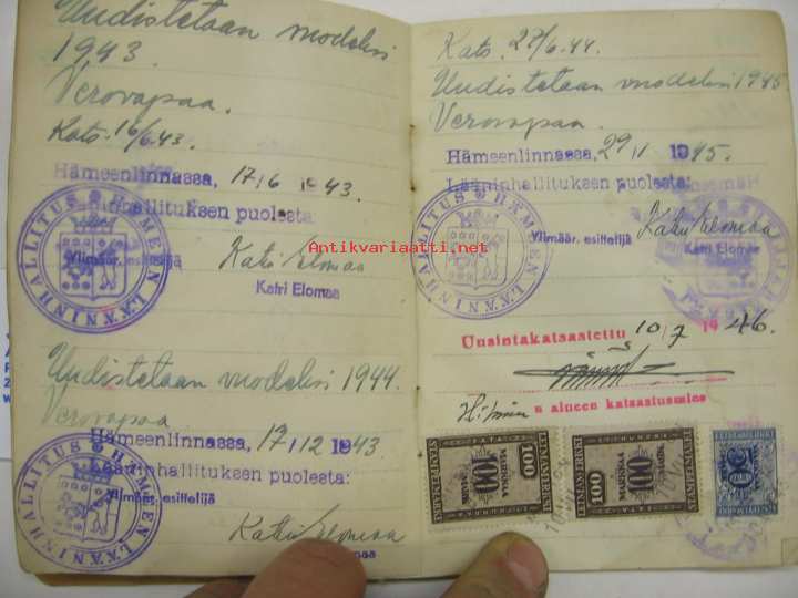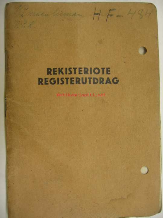 Ford V-8 85 1937 Hämeenlinnan VPK paloauto rekisteriote