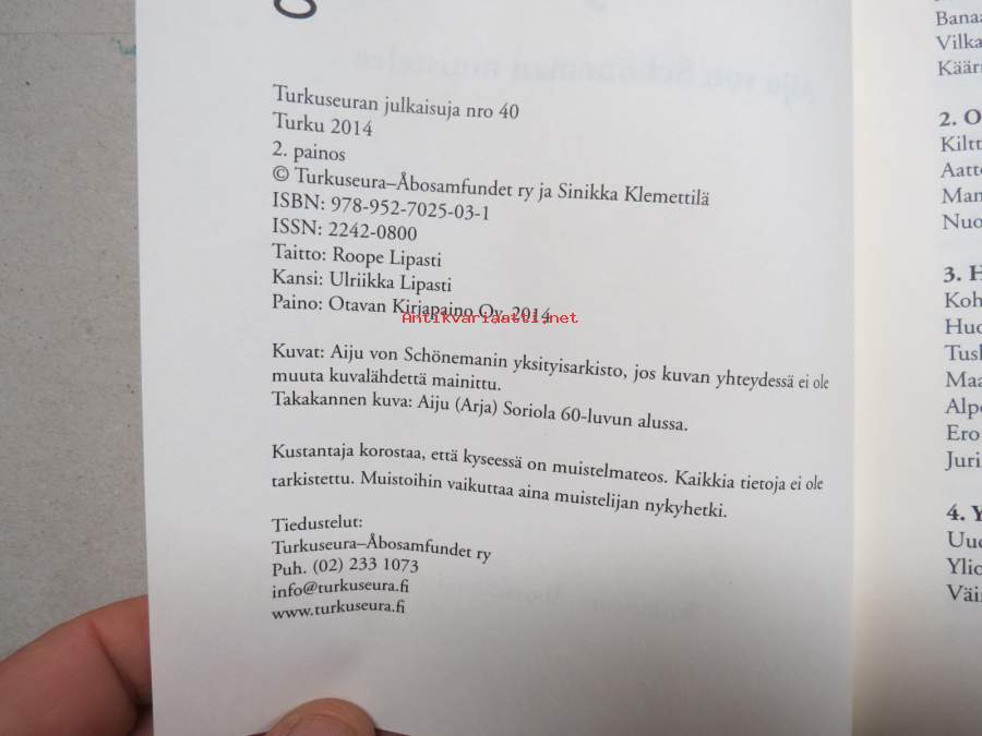 Sinikka Klemettilä, Turkuseura - Åbosamfundet, 201415 x 21 cm kirja.