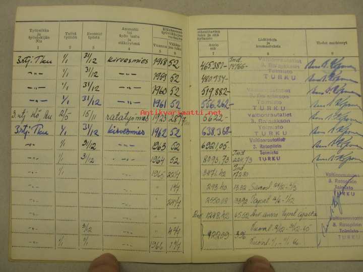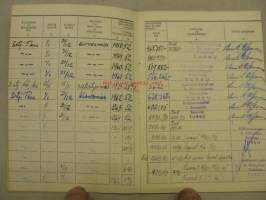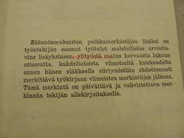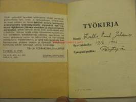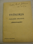 Työntekijän mukana eri työmailla ollut työkirja, johon palvelussuhteet merkittiin.