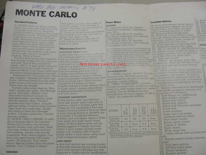 Chevrolet Monte Carlo 1973 -myyntiesite
