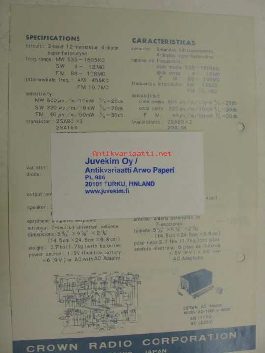 Crown 3-band FM AM transistor radio TRF-1200 -myyntiesite