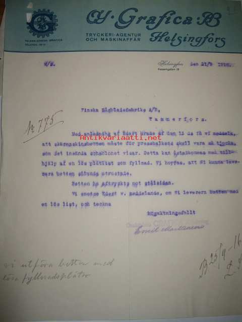Oy Gratifica Ab, Helsinki 21.9 1916 asiakirja