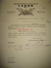 Keskusosuuskunta labor rl, Helsinki 20.11 1936 asiakirja