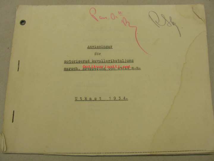 Anvisningar för motoriserad kavalleribaytaljons marsch, gruppering och strid mm. Utkast 1934