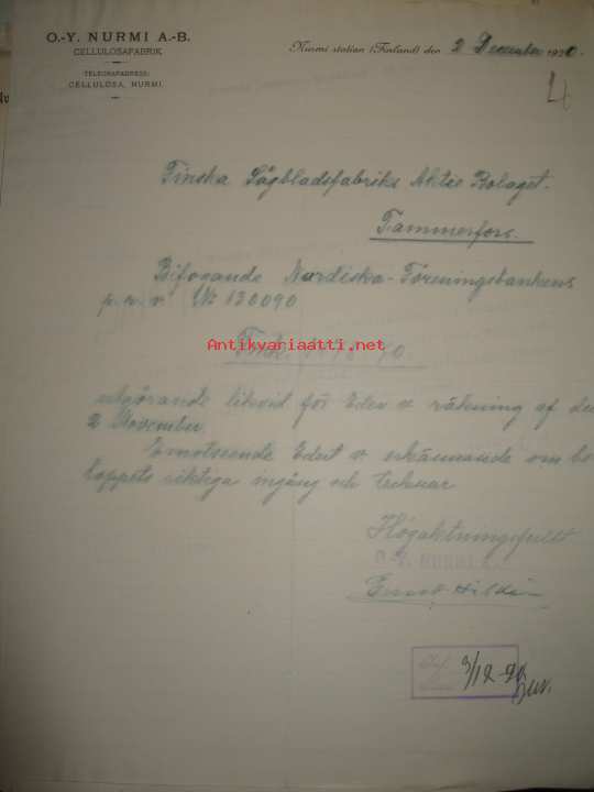 Oy Nurmi ab, Nurmi 2.12 1920 asiakirja