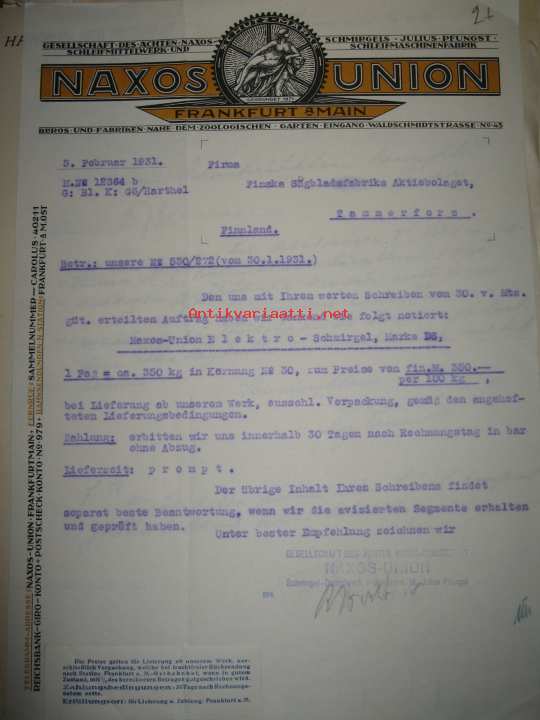 Naxos union, 15.2 1931 asiakirja