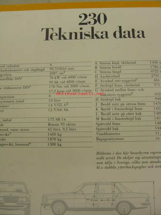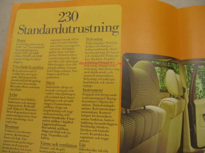 Mercedes-Benz 230 1978 -myyntiesite ruotsiksi
