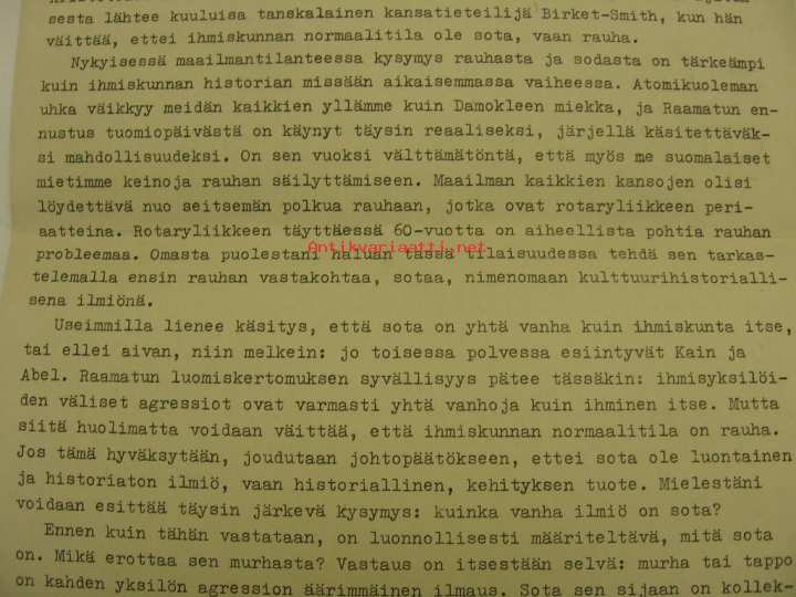 A-4 kokoinen monistenippu, liittyy ilmeisesti Rotary-liikkeen 60-vuotisjuhlien esitelmiin.