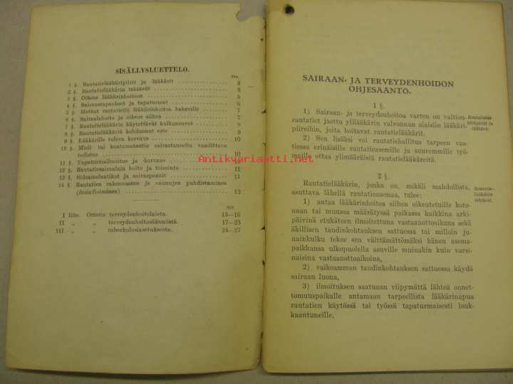 Valtionrautatiet Sairaan- ja terveydenhoidon Ohjesääntö 1928