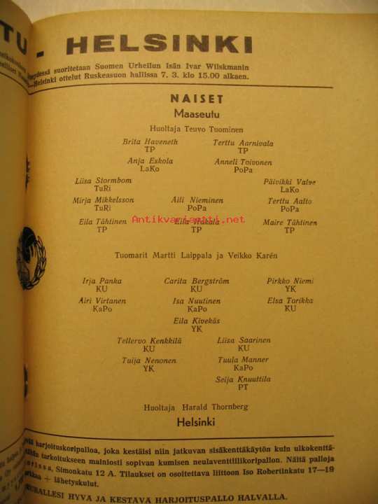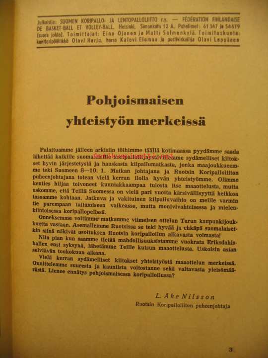 Suomen koripallo- ja lentopalloliitty ry., 1954