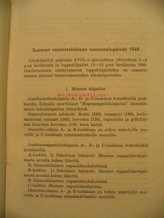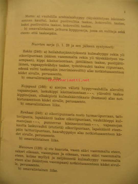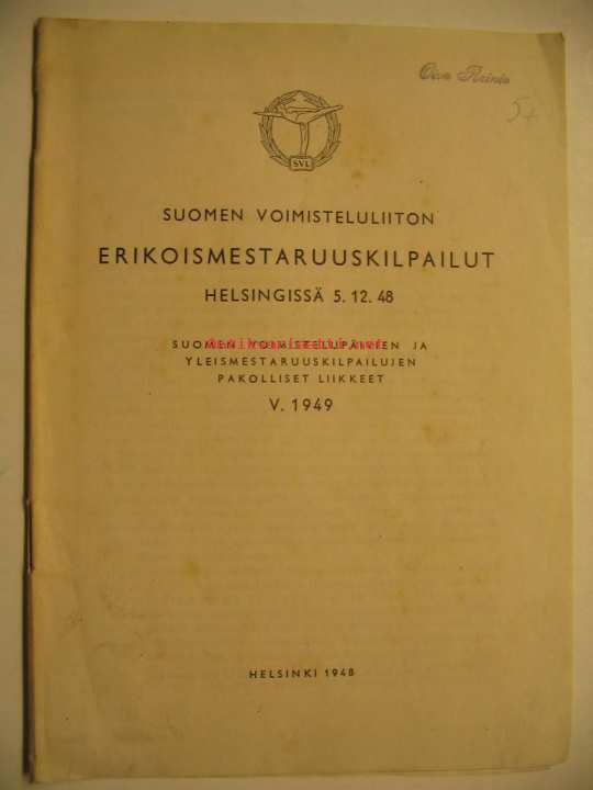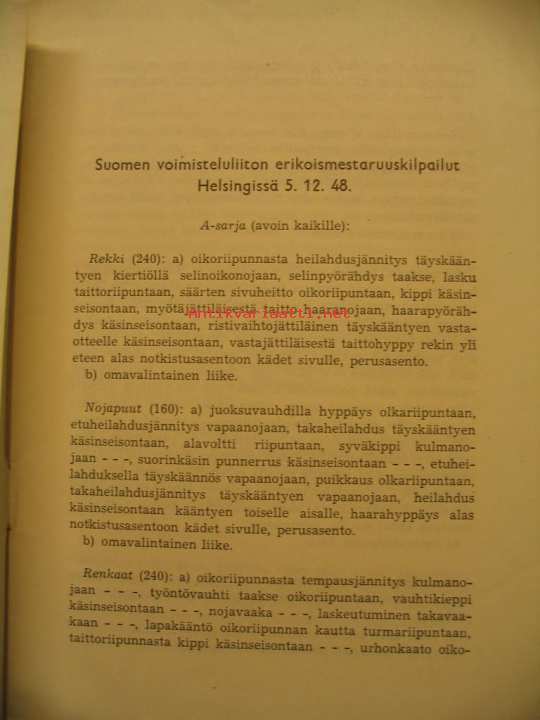 Suomen voimisteluliiton erikoismestaruuskilpailut Helsingissä 5.12 48 - Suomen voimistelupäivien ja yleismestaruuskilpailujen pakolliset liikkeet v. 1