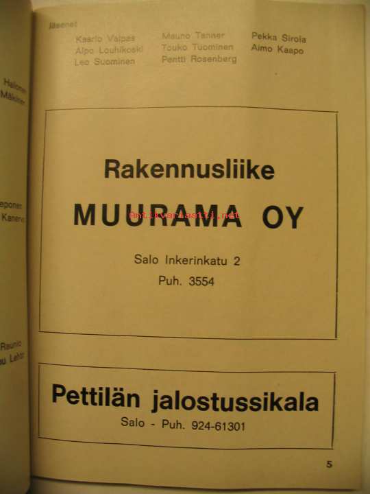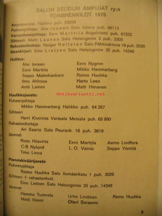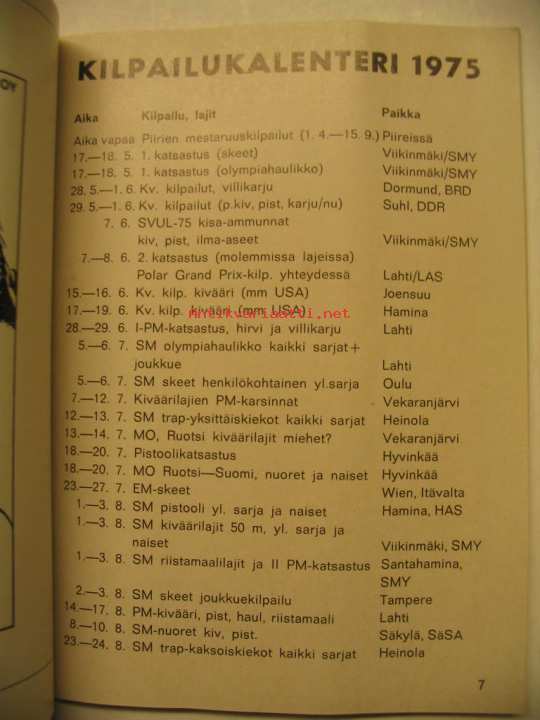 Salon seudun ampujat ry - kilpailuohjelma 1975