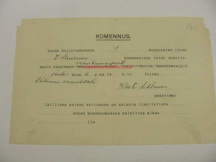 Turun Suojeluskunta Komennus varuskunnan paraatiin 6.12.