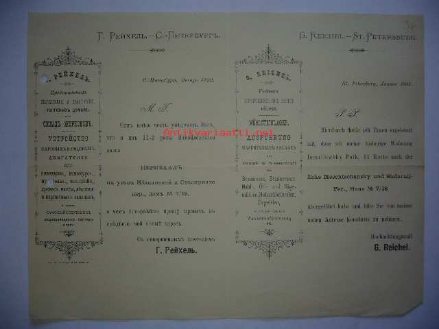 G. Reichel.- St. Petersburg Tammikuu 1892 -asiakirja