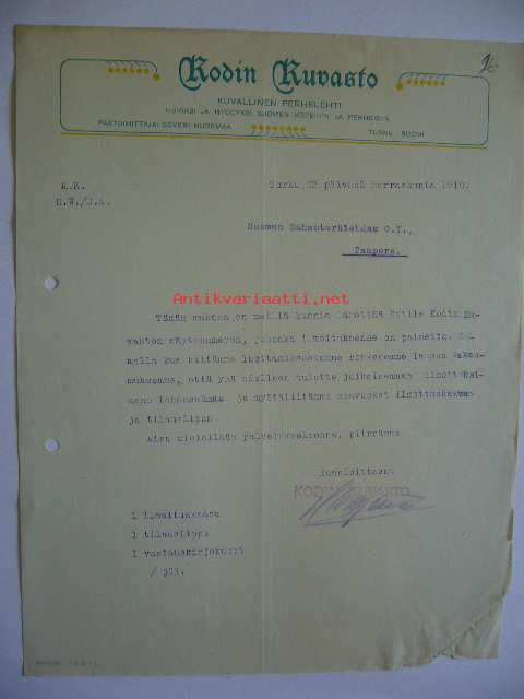 Kodin Kuvasto Kuvallinen Perhelehti Turku 23.11.1910 -asiakirja