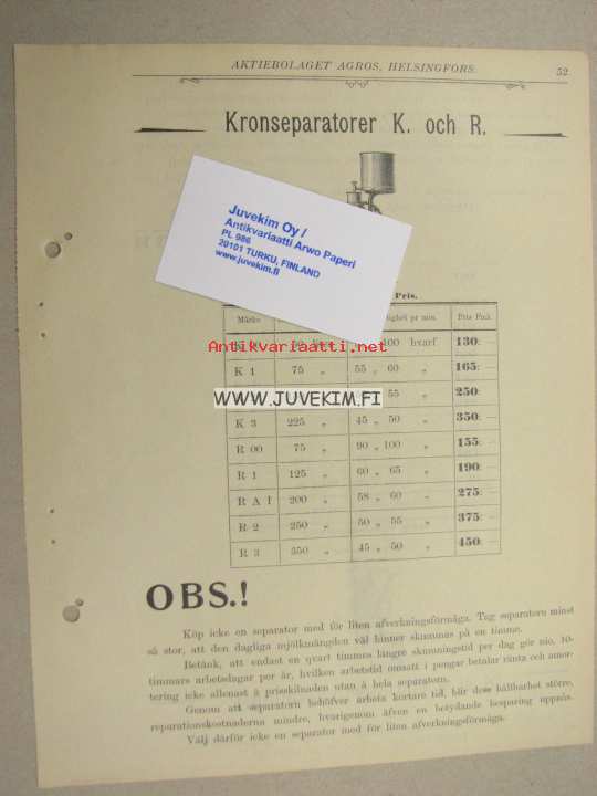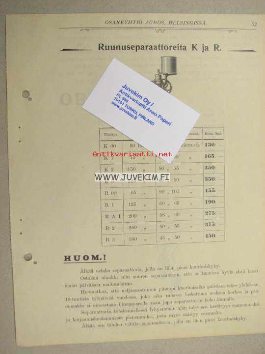 Centrifug Ruunuseparaattorit K ja R -myyntiesite
