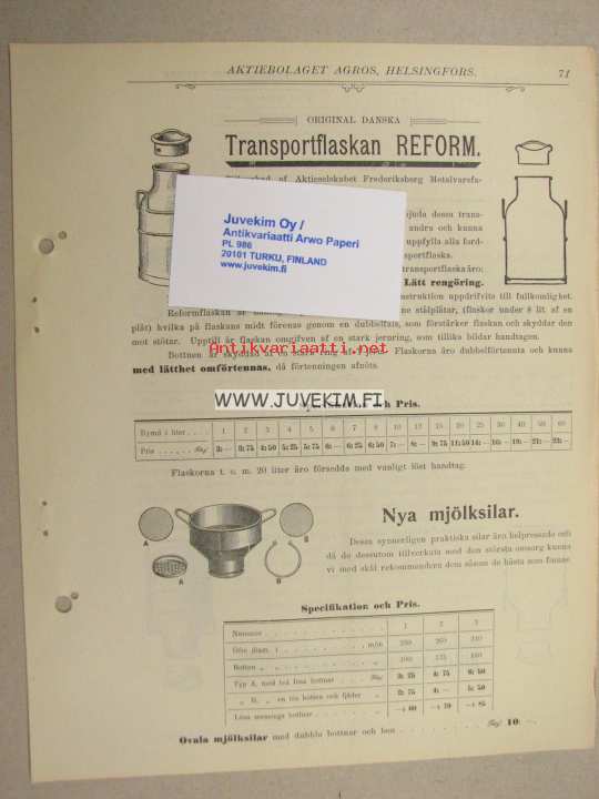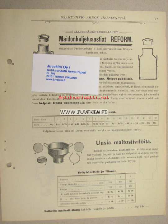 Reform maidonkuljetusastiat -myyntiesite