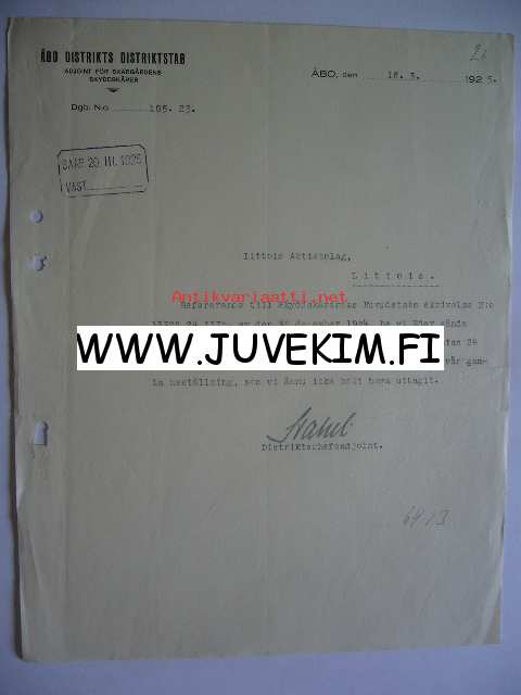 Åbo Distrikts Distrikstab Åbo/Turku 18.3.1925 -asiakirja