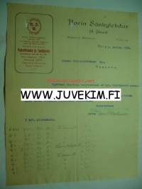 Porin sänkytehdas & Ekvwall Pori 4.12.1923 -asiakirja