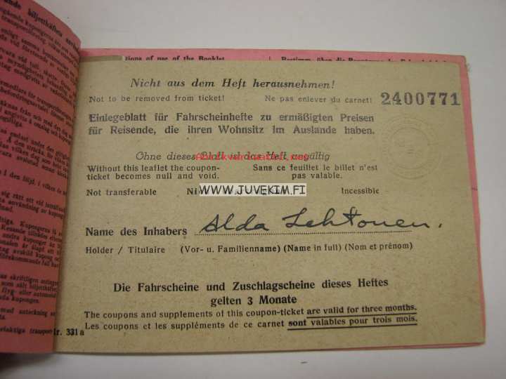 Suomen Matkatoimisto -matkalippuvihko 1939