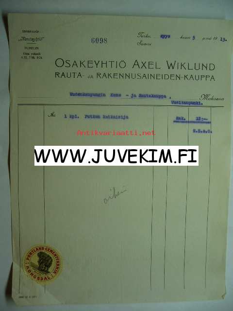 Osakeyhtiö Axel Wiklund Rauta- ja Rakennusaineiden kauppa , 1913