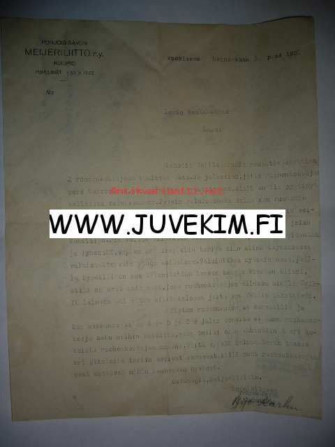 Meijeri -aihe: Pohjois-Savon Meijeriliitto r.y. Kuopio 3.7.1936 -asiakirja