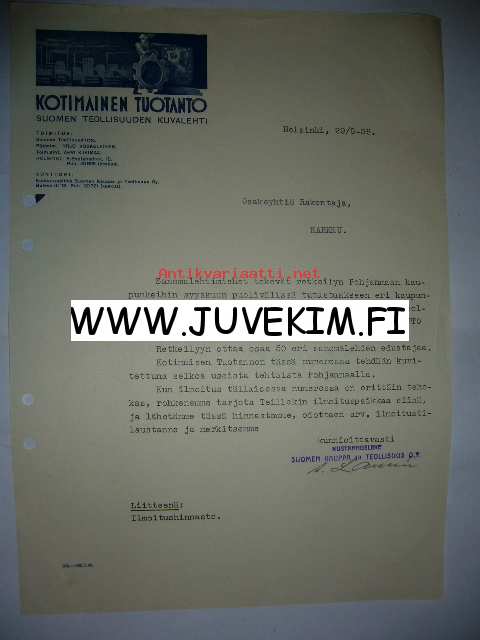 Kotimainen tuotanto suomen teollisuuden kuvalehti Helsinki 29.8.1936 -asiakirja
