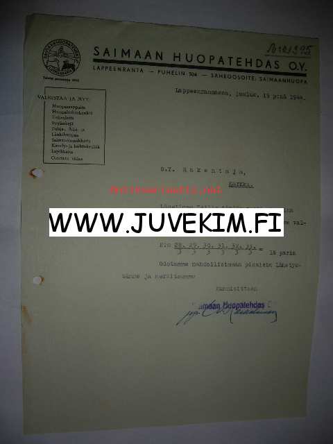 Saimaan Huopatehdas O.Y. Lappeenranta , 1944