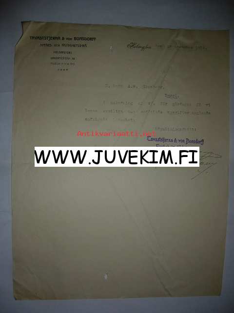 Tavaststjerna & von Bonsdorff Affärs- och Fastighetsbyrå Helsingfors/Helsinki 19.11.1912 -asiakirja